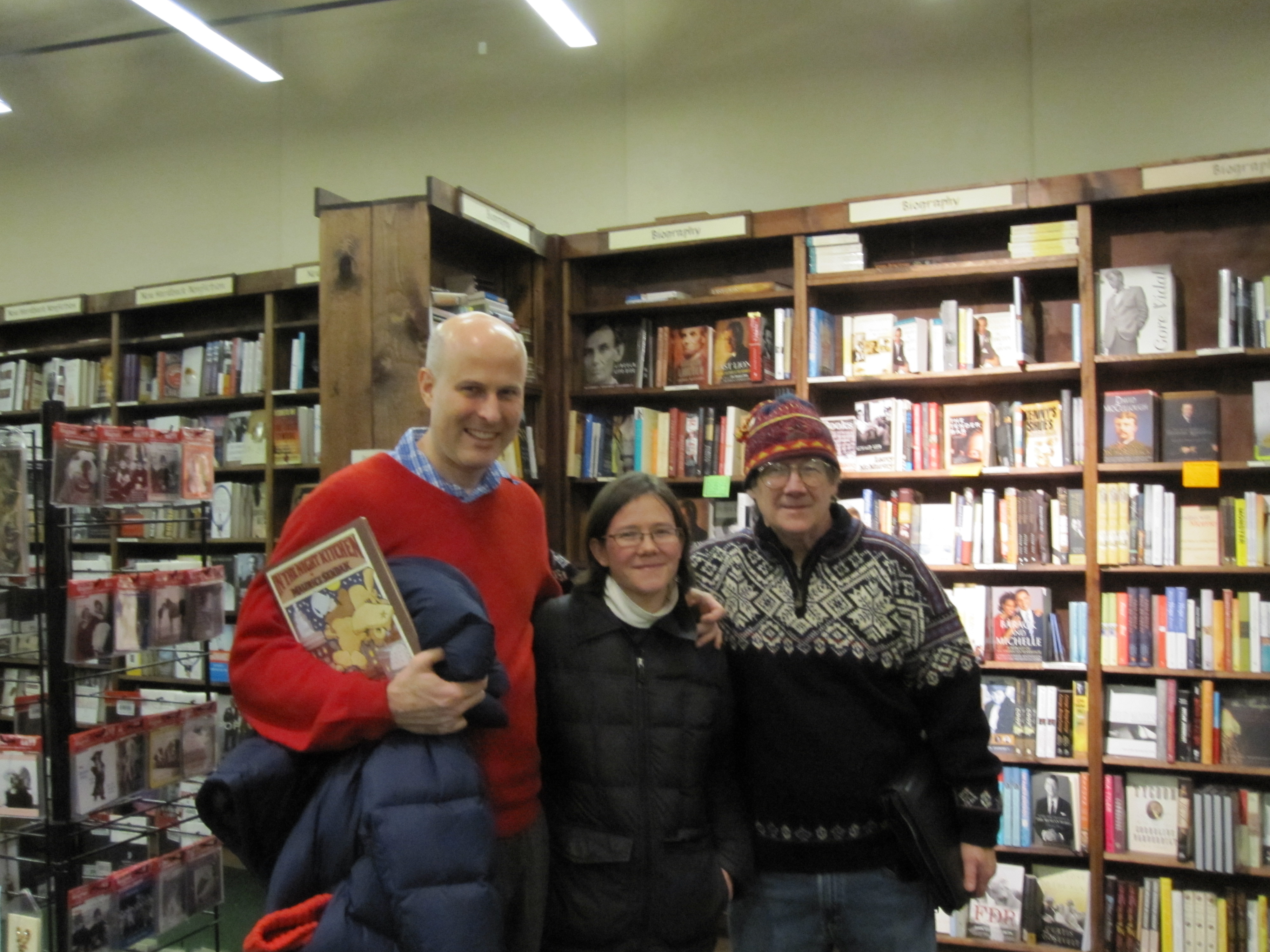 As many book lovers, especially those who live in the western United States, know, the Tattered Cover is an incredible independent book store in Denver–or now 3 stores, actually. I have gone there my entire life. I remember sitting on the floor reading Gnomes in its first tiny location in Cherry Creek, after taking ballet at the Red Shoes up the street. And my shelves groan under the weight of books I have either purchased there or that other people have purchased for me as gifts. When my family is in Denver for Christmas, the Tattered Cover is always the last stop on my father’s and my marathon Christmas Eve shopping trip. (Below is picture of Neilson, my father, and I last Christmas in the store.) For all these reasons, I am especially excited that I will speaking about Harriet Hosmer: A Cultural Biography on March 22 at 7:30 at the LoDo branch of the store.
